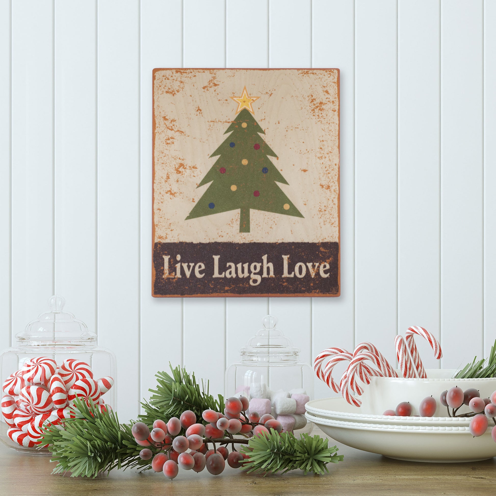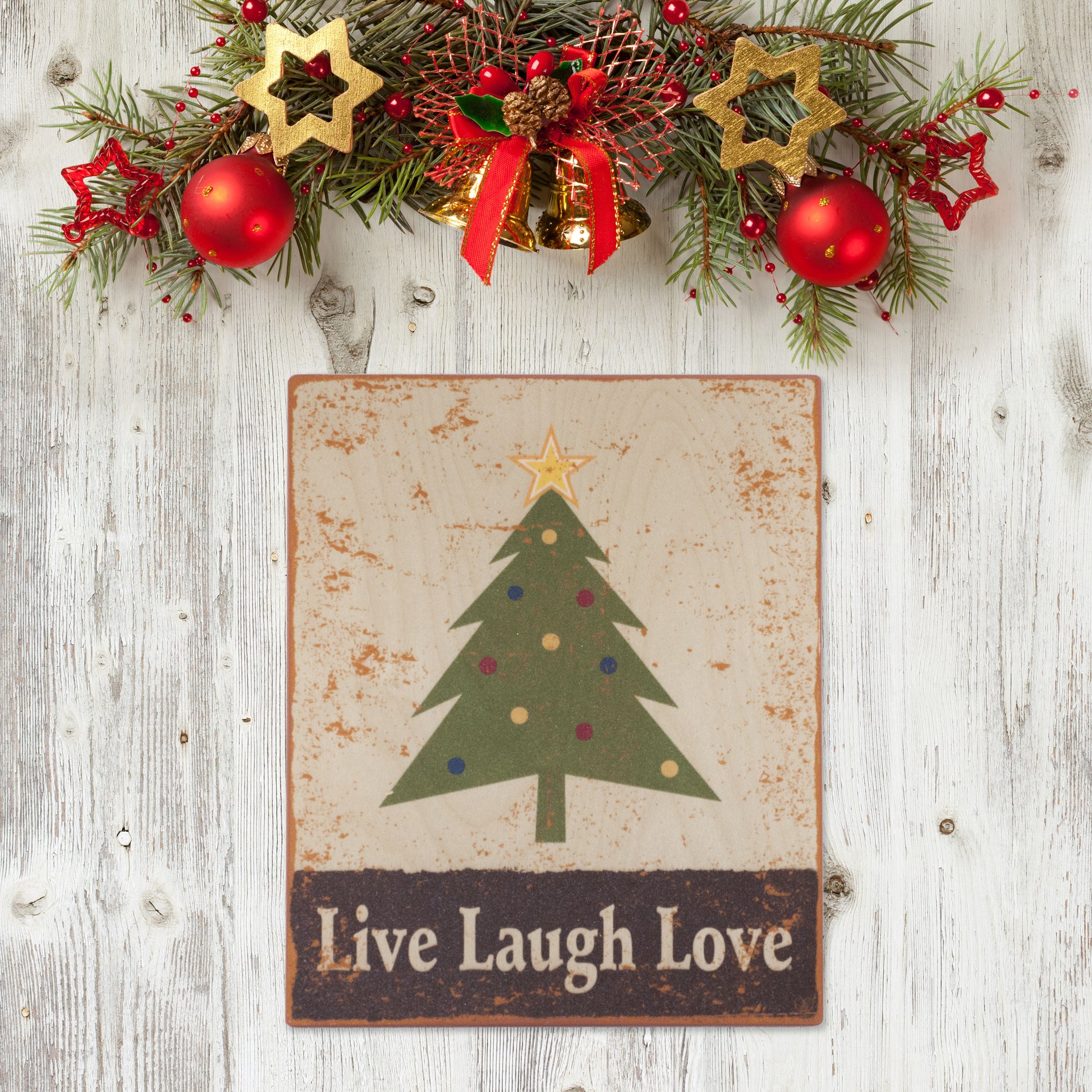 Star Topped Christmas Tree Wall Plaque Vintage Wood Sign Plaque by Live Laugh Love®